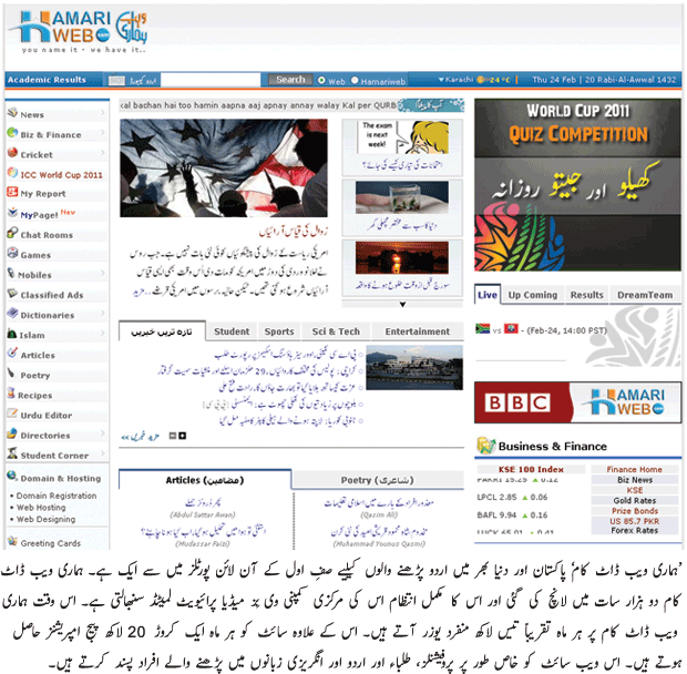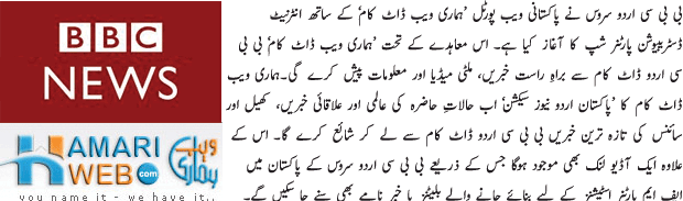 BBC Urdu has launched an internet distribution partnership with the Pakistani web portal, Hamariweb.com The agreement sees Hamariweb.com displaying multimedia news and information direct from bbcurdu.com