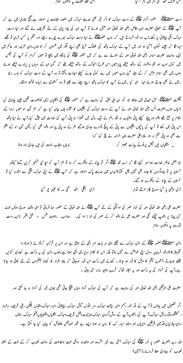 حضور صلی اﷲ علیہ وآلہ وسلم کے اعضاء جسمانی سے معجزات کا ظہور