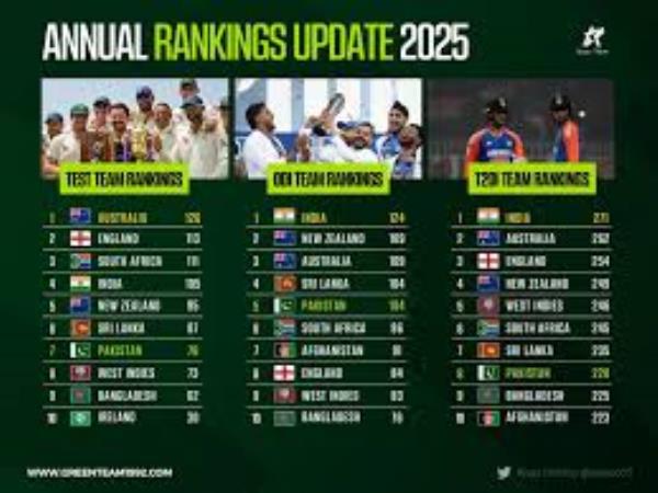 ستمبر 2025 تک، ٹیسٹ رینکنگ میں آسٹریلیا ٹاپ پر ہے، جبکہ ون ڈے میں بھارت اور ٹی ٹوئنٹی میں انگلینڈ کی ٹیمیں غالب ہیں۔ بیٹنگ میں بابیل، وریٹ انڈیکس اور جو روٹ جیسے کھلاڑی اوپری حیثیتوں میں ہیں۔ بولنگ میں راشد خان اور جیسٹن آرچر جیسی شخصیات نمایاں ہیں۔ (نوٹ: تازہ ترین اپ ڈیٹس کے لیے آئی سی سی کی آفیشل ویب سائٹ چیک کریں۔) آئی سی سی رینکنگ کرکٹ کی روح ہے جو ہر کھلاڑی اور ٹیم کو اپنی بہترین کارکردگی دکھانے کا موقع دیتی ہے۔ یہ نہ صرف کھیل کی ترقی میں مددگار ہے بلکہ شائقین کو بھی دلچسپ تجربہ فراہم کرتی ہے۔ اگر آپ کرکٹ کے شوقین ہیں تو رینکنگ کو فالو کرتے رہیں اور اپنی پسندیدہ ٹیم کی کامیابی کی دعا کریں۔ |