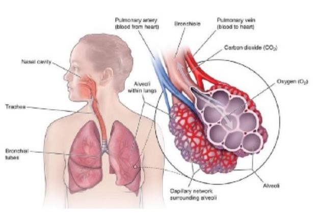 | پھیپھڑے سینے میں سپونجی، لچکدار اعضاء کا ایک جوڑا ہیں جو سانس لینے اور گیس کے تبادلے کے لیے ذمہ دار ہیں، جہاں وہ ہوا سے آکسیجن لیتے ہیں اور خون سے کاربن ڈائی آکسائیڈ خارج کرتے ہیں۔ یہ نظام تنفس کے بنیادی اعضاء ہیں، جو دل کے دونوں طرف واقع ہیں، اور پسلی کے پنجرے اور ایک پرت کے ذریعے محفوظ ہوتے ہیں ۔ دائیں پھیپھڑوں میں تین گڑھے ہوتے ہیں، جبکہ بائیں میں دل کو ایڈجسٹ کرنے کے لیے دو ہوتے ہیں۔پھیپھڑے سینے کے گڑھے میں چھاتی کی ہڈی کے دونوں طرف واقع ہوتے ہیں اور پانچ اہم حصوں (لوبز) میں تقسیم ہوتے ہیں۔ پھیپھڑے خون سے کاربن ڈائی آکسائیڈ کو نکالنے اور اس میں آکسیجن شامل کرنے کے ذمہ دار ہیں۔ ایسا کرنے کے لیے دل اور پھیپھڑے مل کر کام کرتے ہیں۔پھیپھڑوں میں ہزاروں باریک ٹیوبیں ہوتی ہیں جو چھوٹے ہوا کی تھیلیوں (ایلوولی) کے گچھوں میں ختم ہوتی ہیں۔ ان میں سے ہر ایک تھیلی خون کی نالیوں میں ڈھکی ہوئی ہے جو رگوں اور شریانوں کے نظام سے جڑتی ہے جو جسم میں خون کو منتقل کرتی ہے۔جب ہم سانس لیتے ہیں تو پلمونری (پھیپھڑوں) کی شریان اور اس کی شاخیں خون لاتی ہیں جس میں کاربن ڈائی آکسائیڈ بہت زیادہ ہوتا ہے اور ان برتنوں میں آکسیجن نہیں ہوتی۔ کاربن ڈائی آکسائیڈ خون کو چھوڑ کر ہوا میں داخل ہوتی ہے، اور آکسیجن ہوا چھوڑ کر خون میں داخل ہوتی ہے۔ایک بار جب خون میں وافر مقدار میں آکسیجن ہو اور کاربن ڈائی آکسائیڈ نہ ہو تو یہ دل میں واپس آ جاتا ہے اور باقی جسم میں پمپ کیا جاتا ہے۔ پھیپھڑے نظام تنفس کا ایک اہم حصہ ہیں، جو آپ کو سانس لینے کی اجازت دیتا ہے۔ پھیپھڑوں کے علاوہ، نظام تنفس میں ایئر ویز شامل ہیں جو آپ کے پھیپھڑوں کے اندر اور باہر ہوا لے جاتے ہیں، پھیپھڑوں کے ارد گرد خون کی نالیاں، اور وہ پٹھے جو آپ کو سانس لینے میں مدد دیتے ہیں۔ جسم آکسیجن سے بھرپور ہوا کو پھیپھڑوں میں لانے اور کاربن ڈائی آکسائیڈ (ایک فضلہ گیس) کو پھیپھڑوں سے باہر نکالنے کے لیے کئی ذرائع استعمال کرتا ہے۔ جسم کے ایئر ویز میں شامل ہیں:ناک کی گہا منہ وائس باکس (جسے larynx کہتے ہیں)ونڈ پائپ (جسے ٹریچیا کہا جاتا ہے)bronchial ٹیوبیں جب آپ اپنی ناک یا منہ سے سانس لیتے ہیں، تو ہوا گرم اور مرطوب ہوجاتی ہے، اور پھر آپ کے وائس باکس کے ذریعے اور ونڈ پائپ کے نیچے منتقل ہوجاتی ہے۔ وہاں سے، یہ پھیپھڑوں میں داخل ہونے والی دو bronchial tubes کے نیچے سفر کرتی ہے۔ ٹشو کا ایک پتلا فلیپ، ایپیگلوٹس، جب آپ نگلتے ہیں تو آپ کے ہوا کی نالی کو روکتا ہے تاکہ کھانے اور مائع کو داخل ہونے سے روکا جا سکے۔جب آپ سانس باہر نکالتے ہیں تو ہوا آپ کے ایئر ویز کے ذریعے جسم سے نکل جاتی ہے۔ سانس کی سرگرمیوں کے علاوہ، پھیپھڑے دیگر جسمانی افعال انجام دیتے ہیں۔ ان کے ذریعے پانی، الکحل اور فارماسولوجیکل ایجنٹوں کو جذب اور خارج کیا جا سکتا ہے۔ عام طور پر، تقریباً ایک چوتھائی پانی روزانہ خارج ہوتا ہے۔ بے ہوشی کرنے والی گیسیں جیسے ایتھر اور نائٹرس آکسائیڈ کو پھیپھڑوں کے ذریعے جذب اور ہٹایا جا سکتا ہے۔ پھیپھڑے بھی ایک حقیقی میٹابولک عضو ہے۔ یہ متعدد مادوں کی ترکیب، ذخیرہ، تبدیلی، اور انحطاط میں ملوث ہے، بشمول پلمونری سرفیکٹنٹ، فائبرن، اور دیگر فعال طور پر متنوع مالیکیولز (یعنی، ہسٹامین، انجیوٹینسن، اور پروسٹاگلینڈنز)۔ سانس کی سرگرمیوں کے علاوہ، پھیپھڑے دیگر جسمانی افعال انجام دیتے ہیں۔ ان کے ذریعے پانی، الکحل اور فارماسولوجیکل ایجنٹوں کو جذب اور خارج کیا جا سکتا ہے۔ عام طور پر، تقریباً ایک چوتھائی پانی روزانہ خارج ہوتا ہے۔ بے ہوشی کرنے والی گیسیں جیسے ایتھر اور نائٹرس آکسائیڈ کو پھیپھڑوں کے ذریعے جذب اور ہٹایا جا سکتا ہے۔ |