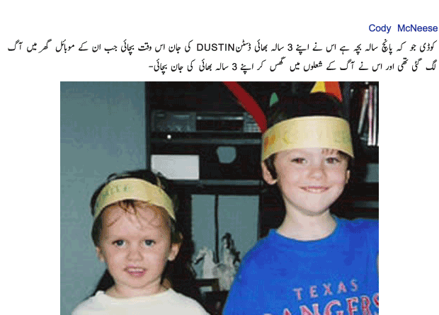 Little Heroes - Read some brave stories of little children. They make history by saving life of many. This article include stories of Nathan Thomson and Alexis Goggin a nine and seven year old child who safe their mother life, brave story of Kamal Nepali. Isabella Keeling, Cody McNeese, Charlie Simpson and other little heroes.
