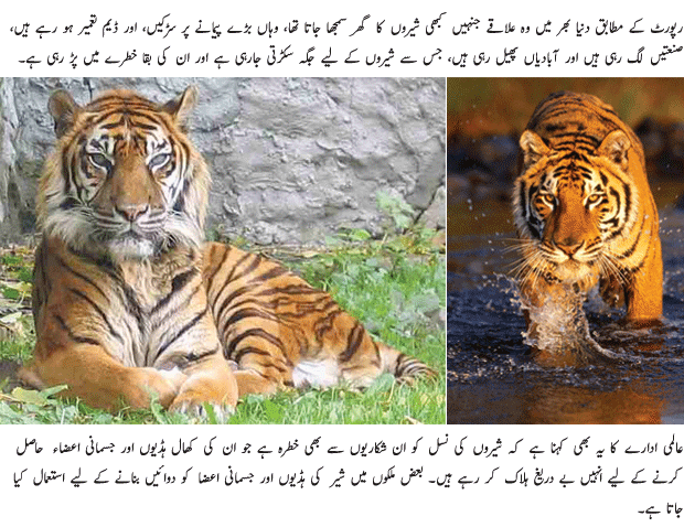 Tigers In Danger - Since 1900, the endangered tiger's habitat and numbers have been reduced by up to 95 percent due to killing and selling their skins and body parts for use in traditional medicine. It is known that all remaining tigers live in small, isolated populations in widely scattered reserves. The numbers of tigers in the 1900’s were over 100,000 which have dropped to 4,000 in the 1970's. Today, we have only 3200 tigers on the earth.