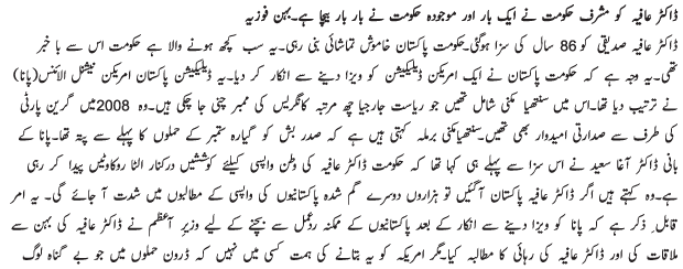 ڈاکٹر عافیہ امریکی تاریخ کی سب سے زیادہ سزا پانے والی خاتون بن چکی ہیں