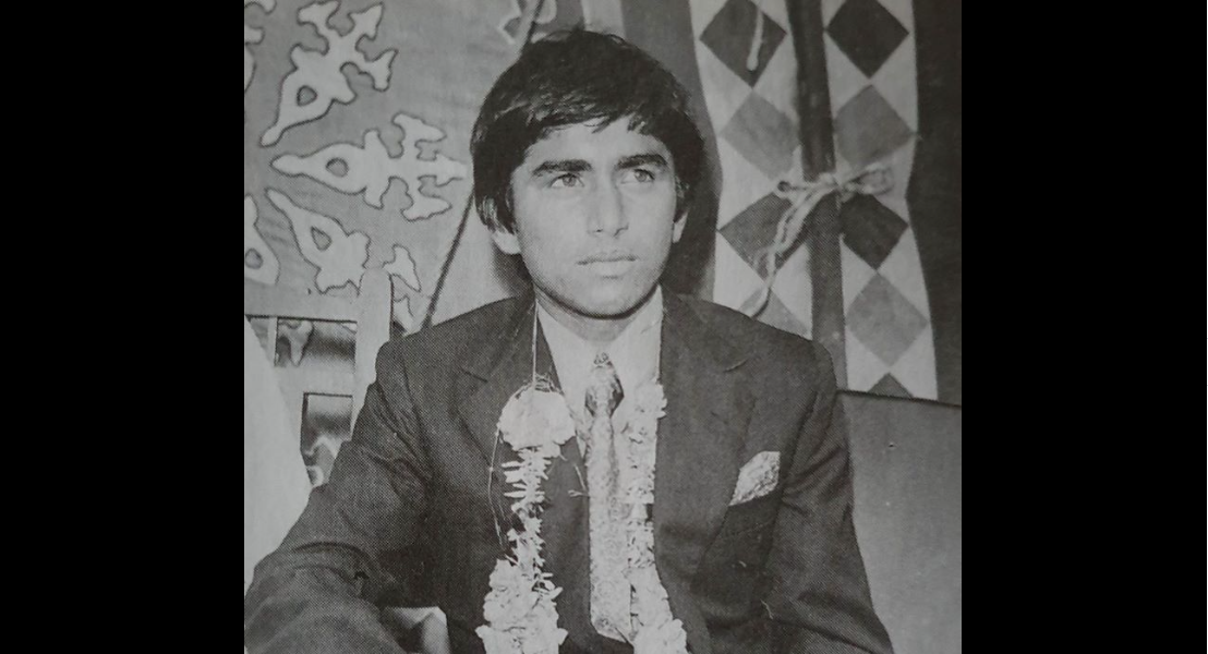 تھری پیس سوٹ میں ملبوس گلے میں ہار پہنے ہوئے آپ اس نوجوان کو پہچان سکتے ہیں؟