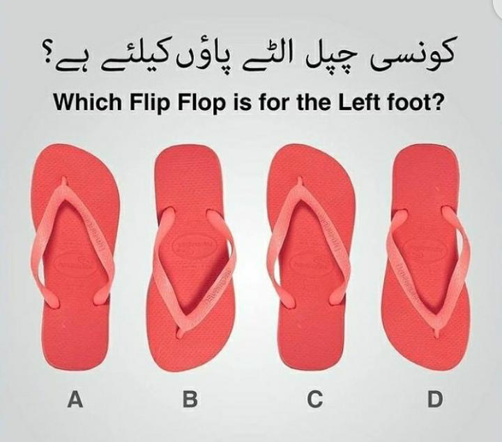 تصویر کو ایک بار غور سے دیکھ کربتائیں الٹے پاؤں کے لیے کونسی چپل ہے۔