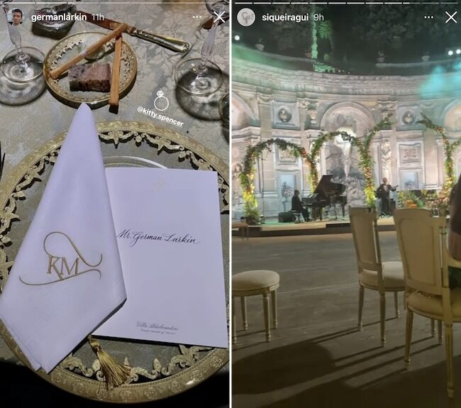 شادی کی تقریب میں پکسی لوٹ، ویسکاؤنٹیس ایما ویموتھ، مارک فرانسس وینڈیلی، مائیکل کے بچے اور لیڈی کِٹی اسپینسر کی بہنیں الزیزا اور امیلیا بھی اس موقع پر موجود تھیں جبکہ شہزادہ ہیری اور شہزادہ ولیم بھی نظر نہیں آئے۔ انہوں نے اطالوی فیشن ہاؤس، ڈولس اور گبانا کے ڈیزائن کردہ لباس پہنے ہوئے تھے۔