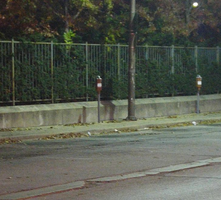 رات کے وقت فٹ پاتھ پر ایک سایہ اس تصویر میں دیکھ سکتے ہیں۔ یقینا آپ قریب نہیں جانا چاہیں گے۔