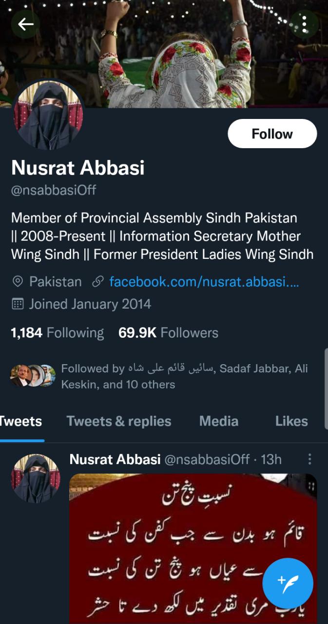 جبکہ یہ تصویر نصرت سحر عباسی کے ٹوئیٹر اکاؤنٹ کی ہے جس پر انہوں نے پروفائل پکچر لگائی ہے۔