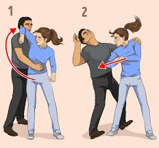 اگر کوئی پیچھے سے بالوں کو گرفت میں لے لے تو مڑے بغیر اس کا ہاتھ زور سے پکڑیں اور ایک دم گھوم کر یا تو گھٹنے اس کے پیٹ میں مار دیں یا پھر ہاتھ کو سامنے والے کی گردن پر سیدھا مار دیں۔