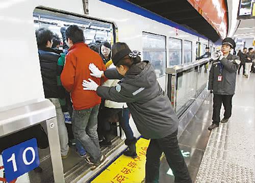 • ٹرین میں لوگوں کو دھکا لگا کر سوار کرنا