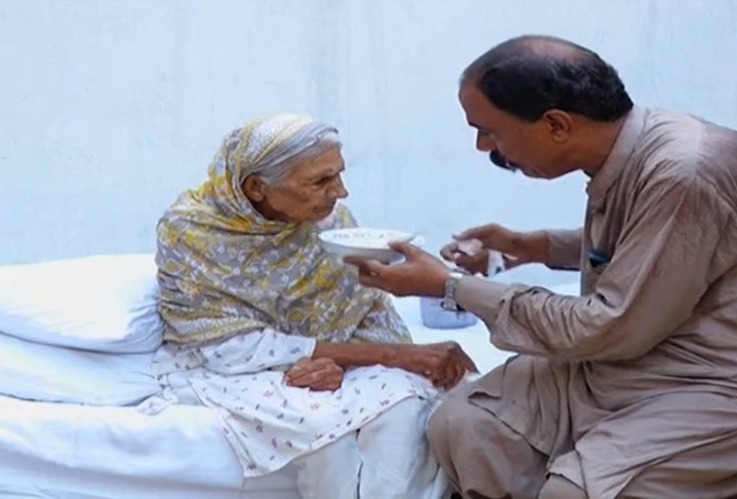 ملتان سے تعلق رکھنے والے رہائشی ملک نصراللہ جو اپنی والدہ سے بے حد محبت کرتے ہیں۔ بینائی سے محروم 90 سالہ بیمار بوڑھی ماں کی تیمارداری میں ملک نصراللہ کوئی کسرنہیں چھوڑتے۔