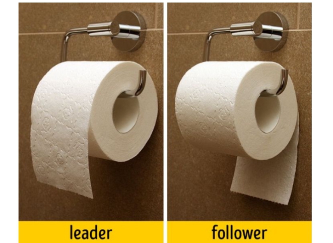 اگر آپ رول کو الٹا کرکے لٹکاتے ہیں تو بہت ممکن ہے آپ اپنے کام میں اچھے ہوں کیونکہ آپ ہدایات پر عمل کرتے ہیں اور اگر آپ سیدھا کرکے لٹکاتے ہیں تو آپ میں لیڈر شپ کے امکانات زیادہ ہیں۔