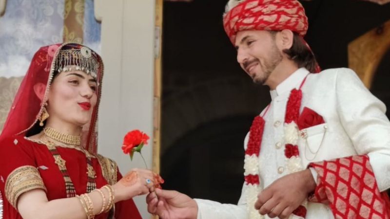 اب جیسے آپ اس جوڑے کو دیکھ لیں، کہ ان کی بارات کرین کے ذریعے جا رہی ہے، لیکن لڑکی کے چہرے پر رونے یا آنسوؤں کے کوئی آثار نہیں ہیں، لڑکی بھی خوشی خوشی بیٹھ کر جا رہی ہے اور خود کو خوش نصیب سمجھ رہی ہے۔