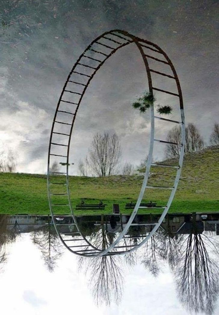 یہ ایک پارک کی تصویر ہے لیکن اس تصویر میں کچھ تو گڑ بڑ موجود ہے۔ اگر آپ اس تصویر کی حقیقت جاننا چاہتے ہیں تو اس کے لیے تصویر کو گھمانا پڑے گا۔