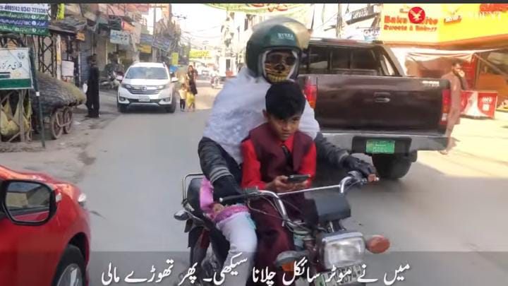 ہنستے ہوئے یہ جملے ادا کرنے والی خاتون کا نام روینہ ندیم ہے جو پانچ بچوں کی والدہ ہیں اور لاہور کی رہائشی ہیں۔ روبینہ کہتی ہیں انھیں بائیک چلانے کا شوق تھا اس لئے سیکھی لیکن پھر حالات ایسے ہوگئے کہ اکیلے شوہر کے پیسوں سے گھر چلانا مشکل ہوگیا تھا اسی لئے انھوں نے خود ہمت کی اور شوق میں سیکھے گئے کام کو پیشہ بنالیا۔