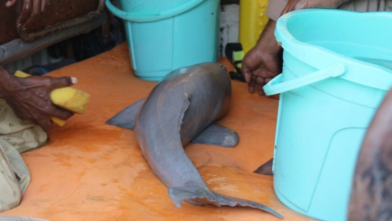 جانور کو واپس محفوظ دریا میں لے جانے کے لئے اس کو مسلسل گیلا اور ٹھنڈا رکھنا پڑتا ہے تاکہ وہ سانس لیتا رہے۔ صوبائی محکمہ وائلڈ لائف کے اہلکار، میر اختر حسین تالپور نے بتایا کہ “ہم جلد سے جلد ان جانداروں کو دریا میں پہنچانے کی کوشش کرتے ہیں کیونکہ ان کی جان بہت نازک ہوتی ہے۔ اس سال 10جانوروں کی جان بچائی جاچکی ہے“