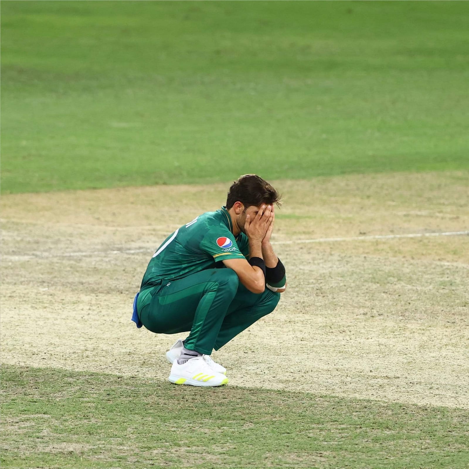دوسری جانب پاکستانی کھلاڑیوں کی تصویر سامنے آئیں ہیں، جہاں شاہین آفریدی آخری گیند پر چھکا کھانے کے بعد افسردہ بیٹھے ہوئے نظر آرہے ہیں۔