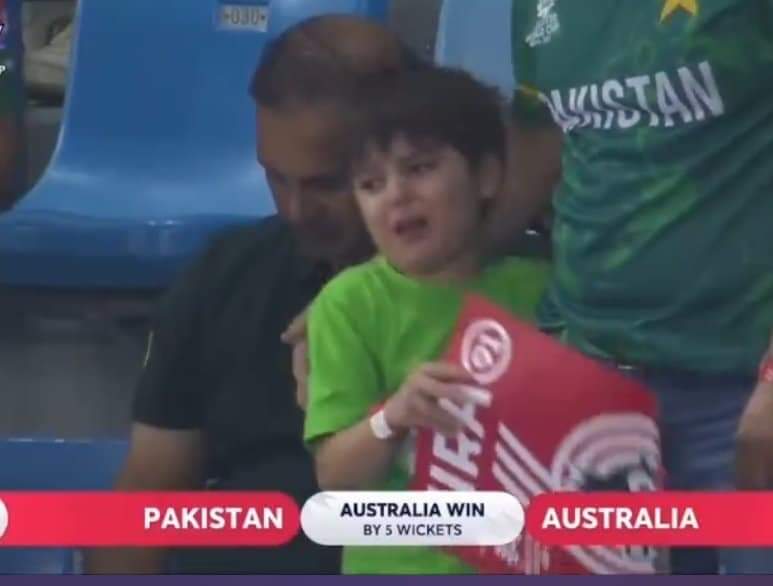 گراؤنڈ میں موجود ایک ننھے پاکستانی شائقین کو دیکھا جاسکتا ہے کہ پاکستانی کی ہار کے بعد وہ رو رہا ہے۔ جبکہ ایک اور تصویر میں چھوٹی بچی پاکستان کی شکست کے بعد اپنے جذبات پر قابو نہ رکھ سکی۔