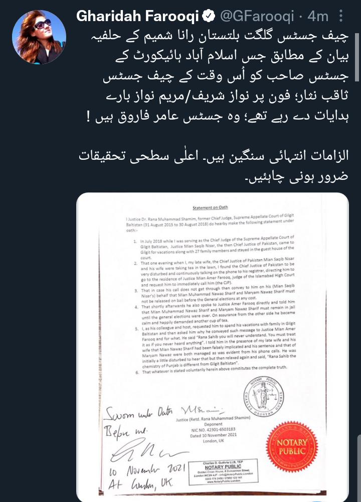 ایک صارف نے تو اس معاملے کی تحقیقات کرنے والے صحافی انصار عباسی کی ویڈیو ہی شئیر کردی اور لکھا کہ ثاقب نثار نے جج کو حکم دیا الیکشن سے پہلے نواز شریف اور مریم چھوٹنے نہیں چاہئیے، سابق چیف جج گلگت بلتستان کا مصدقہ حلف نامے میں انکشاف