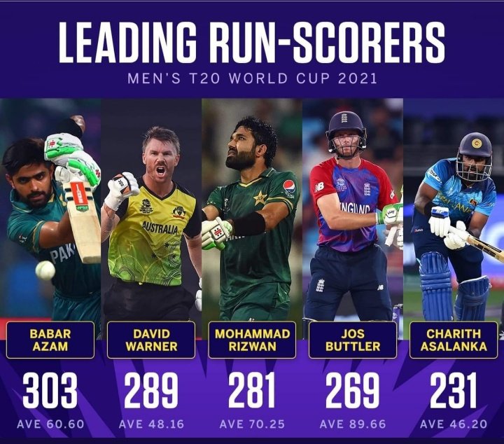 ورلڈ ٹی20 میں پاکستانی ٹیم کے کپتان بابر اعظم کی پرفارمینس نے سب کو اپنا گرویدہ بنا لیا ہے۔ بابر اعظم نے ٹی 20 ورلڈ کپ میں 303 رنز بنا کر پہلی پوزیشن حاصل کی تھی، جبکہ آسٹریلوی کھلاڑی ڈیوڈ وارنر 289 رنز بنا کر دوسرے نمبر پر رہے۔
