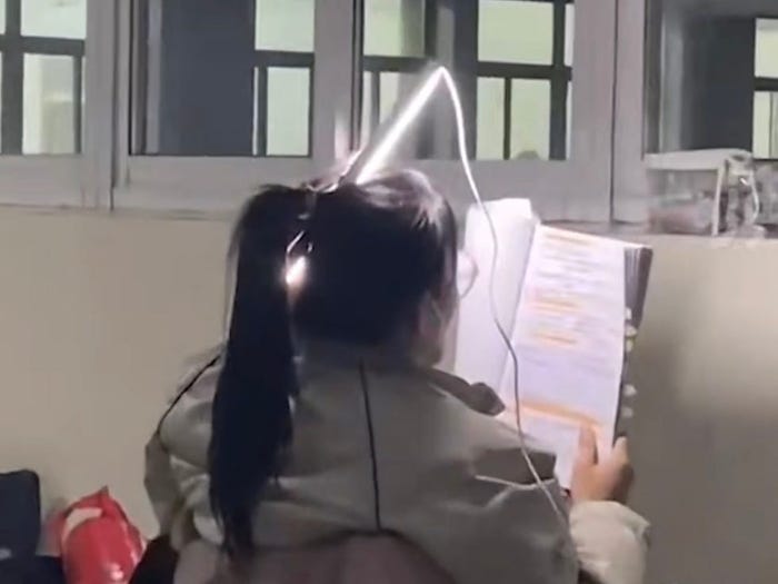 چینی سوشل میڈیا سائٹ ویبو میں ایک دلچسپ ویڈیو وائرل ہوئی ہے جس میں چینی طالبہ ممکنہ طور پرجامعہ کے نوٹس کھولے بیٹھی ہے اور ایک لائٹ اس نے اپنے بالوں میں فکس کی ہوئی ہے تاکہ پڑھنے میں آسانی رہے۔