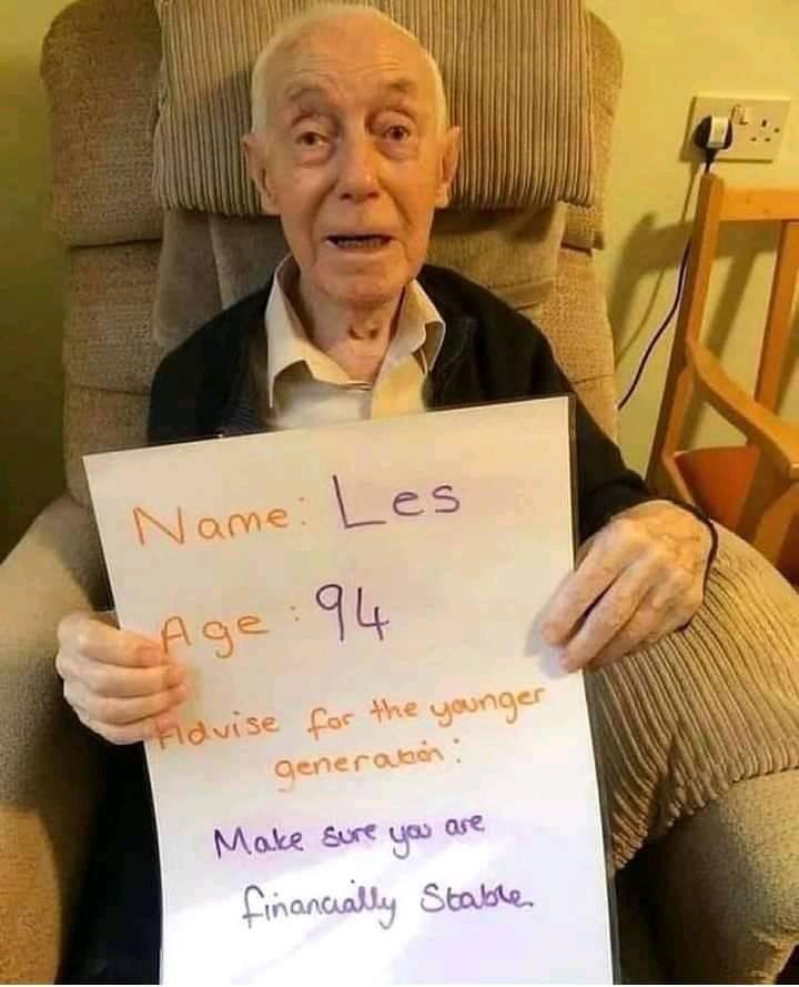 چورانوے سال کے لیس اپنی زندگی بھر کا تجربہ اس ایک جملے میں بیان کرتے ہیں کہ “مالی طور پر خود انحصار بنیں“ اگر آپ جوانی میں ہی بڑھاپے کے بارے میں سوچ کر نہیں چلیں گے تو بڑھاپے میں دوسروں کے محتاج ہوجائیں گے۔