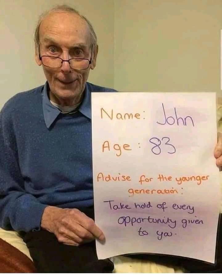 جان تیراسی سال کے ہیں اور ان کی نوجوان نسل کو نصیحت ہے کہ “ہر اس موقع کا فائدہ اٹھائیں جو آپ کو دیا جارہا ہے“ کوئی نہیں جانتا ملنے والا نیا موقع آپ کی زندگی کو کہاں سے کہاں پہنچا دے۔ اس لئے بہتر ہے کہ ہر موقع کا بھرپور فائدہ اٹھائیں۔