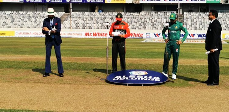 3 ٹی ٹوئنٹی انٹرنیشنل میچز پر مشتل سیریز کا پہلا میچ آج پاکستان اور بنگہ دیش کی ٹیم کے درمیان ڈھاکہ میں کھیلا جارہا ہے۔ میچ میں بنگلہ دیش نے ٹاس جیت کر پاکستان کے خلاف بیٹنگ کا فیصلہ کیا ہے۔ فیصلہ کیا ہے۔