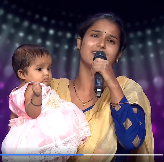 دراصل ہوا کچھ یوں کہ بھارتی ٹی وی کے گلوکاری کے ایک پروگرام میں خاتون گانا گانے آئیں مگر نوازئیدہ بچی ماں کے بغیر ٹک ہی نہیں پا رہی تھی جس کی وجہ سے ماں نے ایک ہاتھ میں بیٹی کو سنبھالا اور دوسرے ہاتھ سے مائک لیا اور گانا شروع کر دیا۔