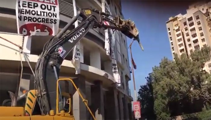 واضح رہے کہ سپریم کورٹ نے نسلہ ٹاور کو گرانے کا حکم دیا تھا، جس کے بعد عدالتی احکامات پرعمل درآمد کرتے ہوئے نسلہ ٹاور کو گرانے کا کام شروع ہوچکا ہے۔ ٹاور کو گرانے کے باعث شارع فیصل سے شاہراہِ قائدین جانے والا راستہ بند کر دیا گیا ہے۔