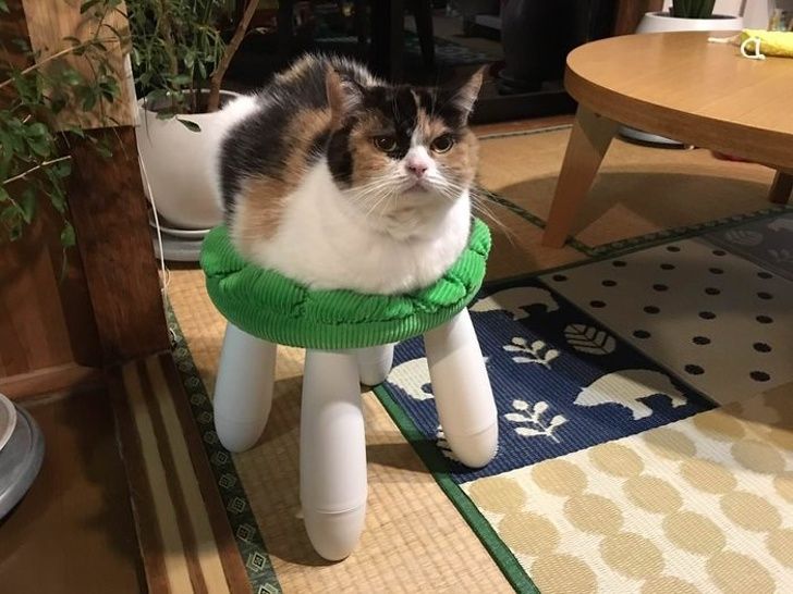 اس تصویر کو دیکھ کر یوں لگتا ہے کہ جیسے بی کے پاؤں لمبے ہوگئے ہوں اور وہ ماڈؒنگ کرنے ریمپ پر نکلی ہو۔در حقیقت بلی ایک اسٹول پر بیٹھی ہے۔ پہلی بار دیکھنے میں تصویر بالکل سمجھ نہیں آئی۔