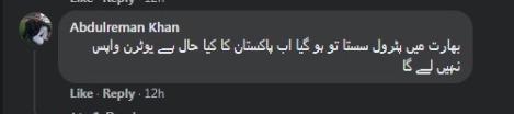 وہیں اِنڈیا میں پیٹرول کی قیمت میں 8 روپے کمی کر کے بھارتی عوام کو خوش خبری کی نوید سنائی گئی ہے۔ سوشل میڈیا پر گذشتہ روز سے یہ خبر ہر میڈیا پلیٹ فارم پر چل رہی ہے کہ بھارت میں پیٹرول کے نرخوں میں کمی کر دی گئی جس پر پاکستانی عوام موجودہ حکومت کو کھری کھری سنانے میں مصروف ہے۔