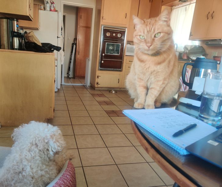 ایک اور تصویر جو شاید جھوٹ بول رہی ہے۔ مذکورہ تصویر میں ایک کچن نظر آرہا ہے مگر یہ کیا ؟ اتنے بڑے سائز کی مانو بلی کچن میں کہاں سے آگئی؟ کیا حقیقت میں یہ بلی اتنے بڑے سائز کی ہے یا تصویر ہمیں دکھوکہ دے رہی ہے؟