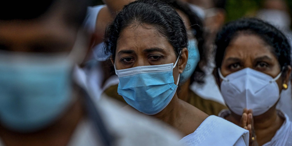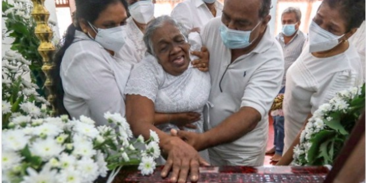 ایک تصویر میں پریانتھا کمارا کی والدہ کو رشتے دار دلاسہ دے رہے ہیں۔