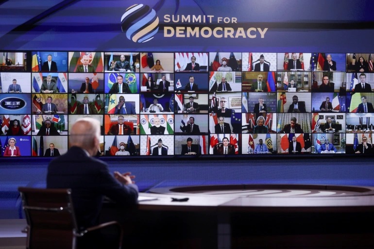 امریکہ میں ہونے والی پہلی جمہوری کانفرنس جس میں 100 ممالک کو ورچوئل (آن لائن) شرکت کی دعوت دی گئی تھی جس میں پاکستان بھی شامل ہے۔ البتہ پاکستان نے کانفرنس میں شرکت کرنے سے معذرت کرلی ہے۔