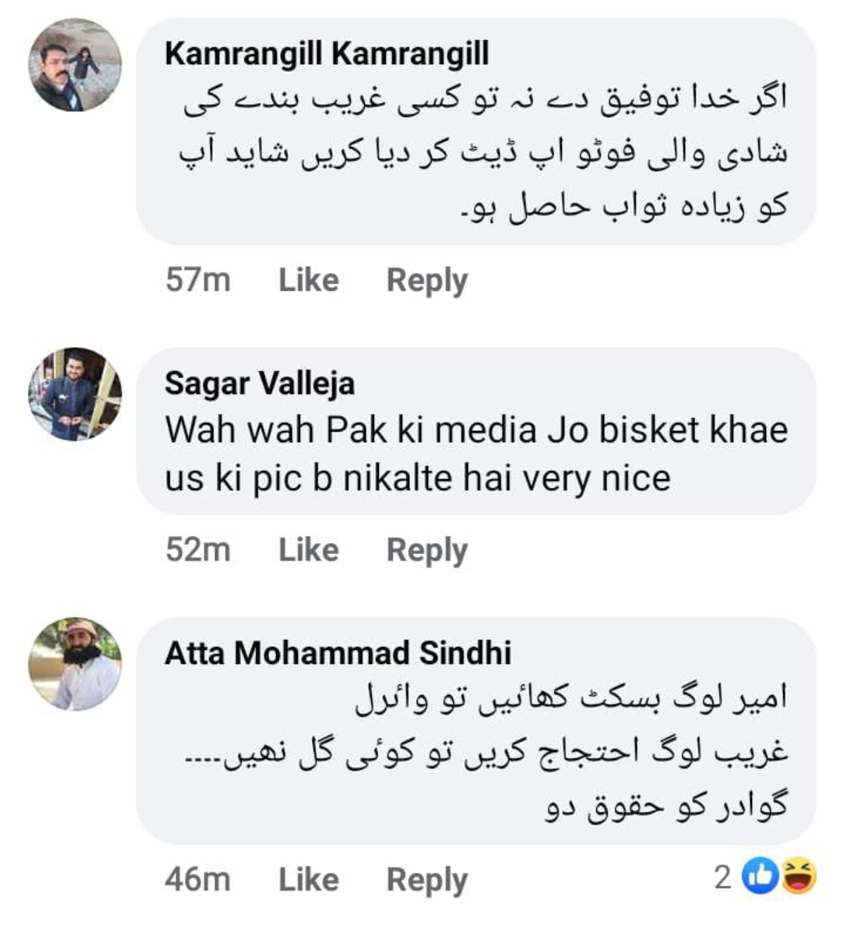 جنید کی یہ تصویر اس وقت کافی وائرل ہے اور لوگ اسے کافی پسند کررہے ہیں البتہ کچھ صارفین سیاسی وجوہات کی وجہ سے مزاحیہ اور طنزیہ تبصرے بھی کررہے ہیں۔ ایک صارف نے لکھا کہ “شکر ہے بسکٹ سونے کا نہیں تھا“ جبکہ ایک اور صارف کا کہنا ہے کہ “امیر لوگ بسکٹ کھاٸیں تو واٸرل غریب لوگ احتجاج کریں تو کوٸی گل نھیں“۔