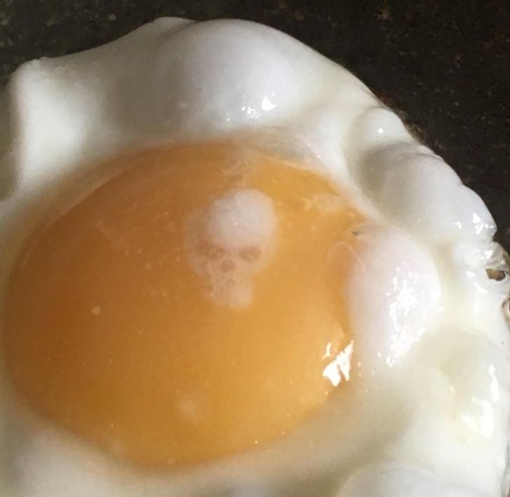 انڈے کی یہ تصویر کافی دلچسپ ہے۔ لیکن انڈا بنانے والے کے لیے تو بالکل نہیں۔ کیونکہ انڈے کی زردی میں انسانی کھوپڑی نظر آرہی ہے اور یہ دیکھ کھانے والے شخص نے ناشتہ شروع کرنے سے پہلے ہی روک دیا ہوگا۔