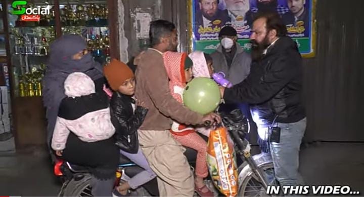 سوشل میڈیا پر ایک ویڈیو وائرل ہورہی ہے جس میں ایک شخص راستے میں ایسے ہی ایسے خاندان کا تعاقب کرتا ہے جو موٹر سائیکل پر سوار تھا۔ اس موٹر سائیکل پر ایک آدمی عرفان اور اس کی بیوی کے ساتھ ان کے 4 ننھے بچے بھی تھے۔