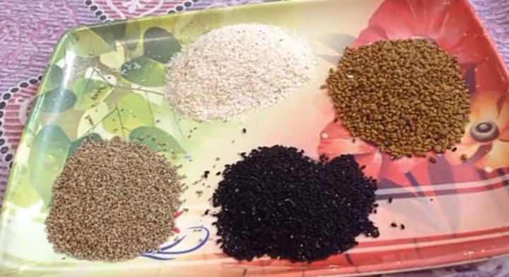 آج ہم ایسا طریقہ بتانے جارہے ہیں جس سے آپ کولیسٹرول، ہاضمے اور صحت کے دیگر مسائل بھی کم کرسکتے ہیں اور اس کو بنانے کے لئے آپ کو چیزیں کچن میں ہی مل جائیں گی۔ اس طریقے کو آزمانے کے لئے آپ کو چاہیے میتھی دانی 2 چمچ، سونف 2 چمچ، آجوائن1 چمچ، زیرہ 1 چمچ اور کلونجی 1 چمچ