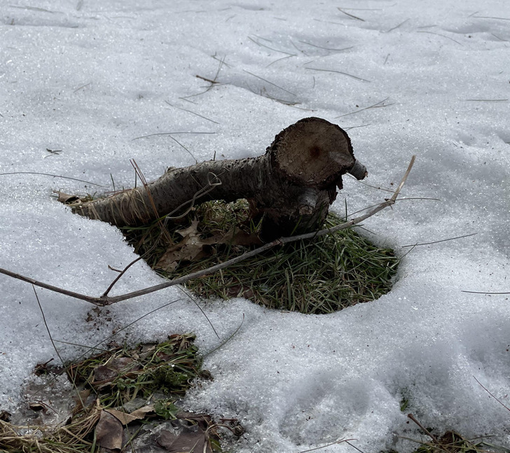 شاید برفباری میں یہ بطخ لکڑی کی بن گئی
