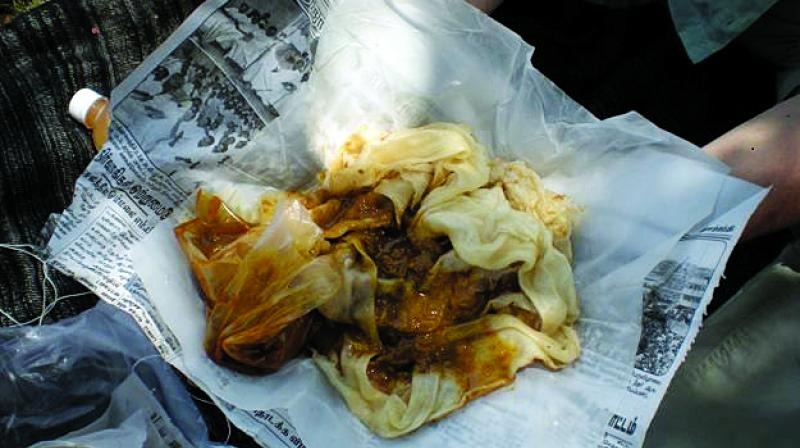 بھارتی تحقیقی ادارے کے مطابق پتلے گتے اور کھانا رکھ کر دینے والی کاغذ کی پلیٹیں استعمال شدہ کاغذات اور اخبارات کو ری سائیکل کرکے بنائی جاتی ہیں جو آلودہ اور جراثیم سے بھرپورے ہوتے ہیں جو نظام ہاضمہ کو خراب کرنے کا سبب بنتے ہیں۔