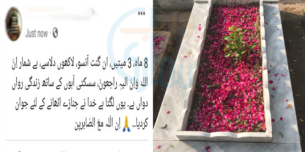 اپنوں کا ساتھ اور پیار زندگی بھر انسان کو اس بات کا احساس دلاتا ہے کہ میں اکیلا نہیں ہوں، اللہ نے ان رشتوں کے ساتھ مجھے جوڑے رکھا ہے جو میری طاقت ہیں، مجھے حوصلہ دیتے ہیں، مجھے سنبھالتے ہیں۔ لیکن جب یہی اپنے آپ سے جدا ہو جائیں تو اس تکلیف کو صرف وہی لوگ سمجھ سکتے ہیں جن پر گزری ہو۔ بالکل ایسا ہی ایک فیس بُک صارف کے ساتھ ہوا جن کے ہاں 8 ماہ میں 3 میتیں ہوئیں۔ انہوں نے اپنے پوسٹ میں لکھا کہ: