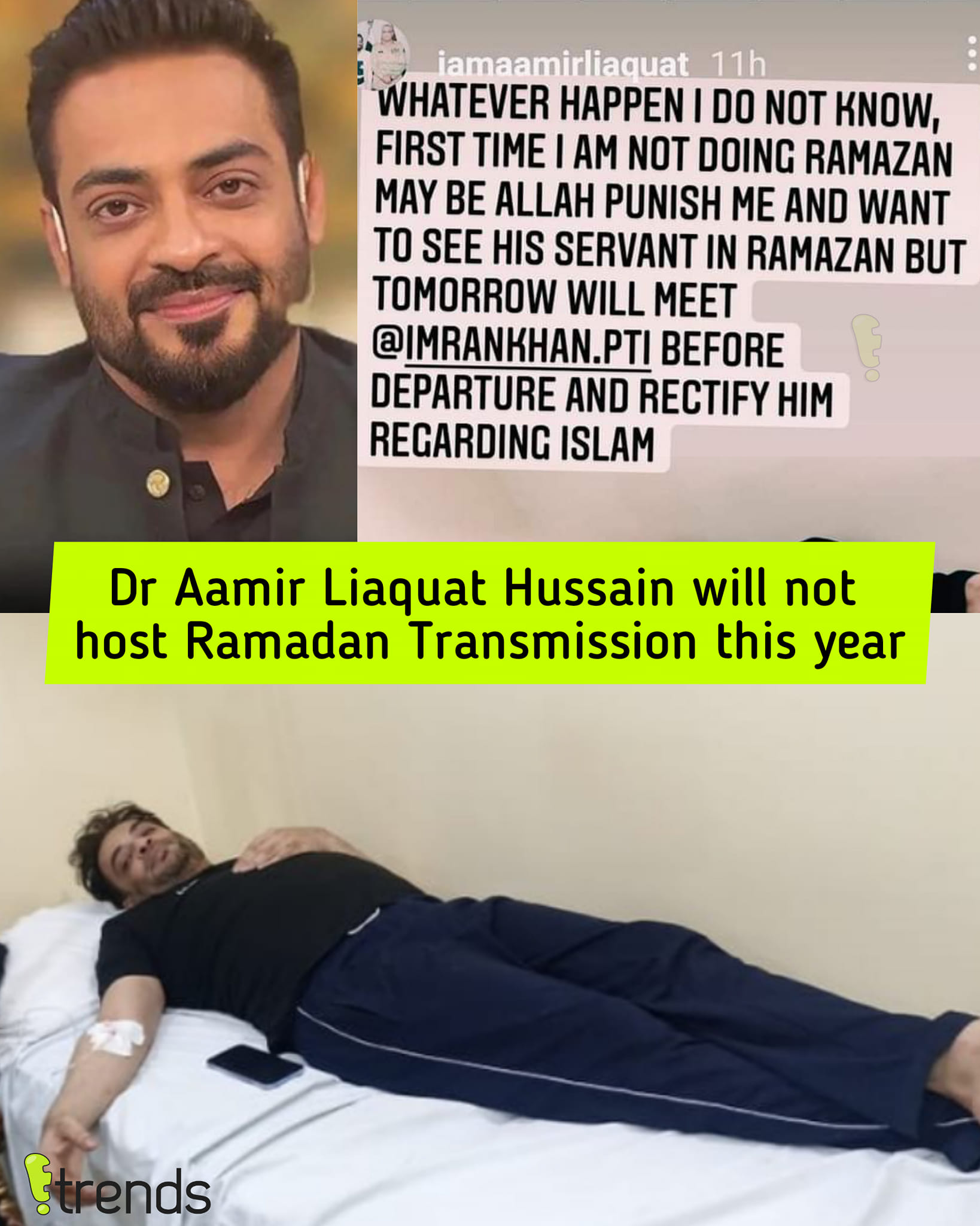 عامر لیاقت کی جانب سے ان کے انسٹاگرام اکاؤنٹ سے اسٹوری پوسٹ کے ذریعے اس خبر کی تصدیق کی گئی کہ وہ رواں سال رمضان ٹرانشمیشن کی میزبانی نہیں کریں گے۔