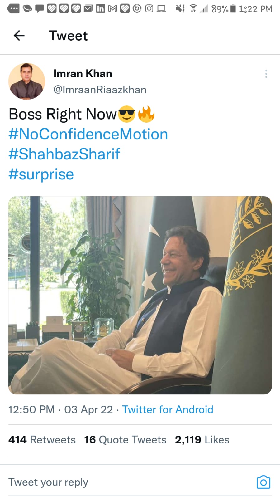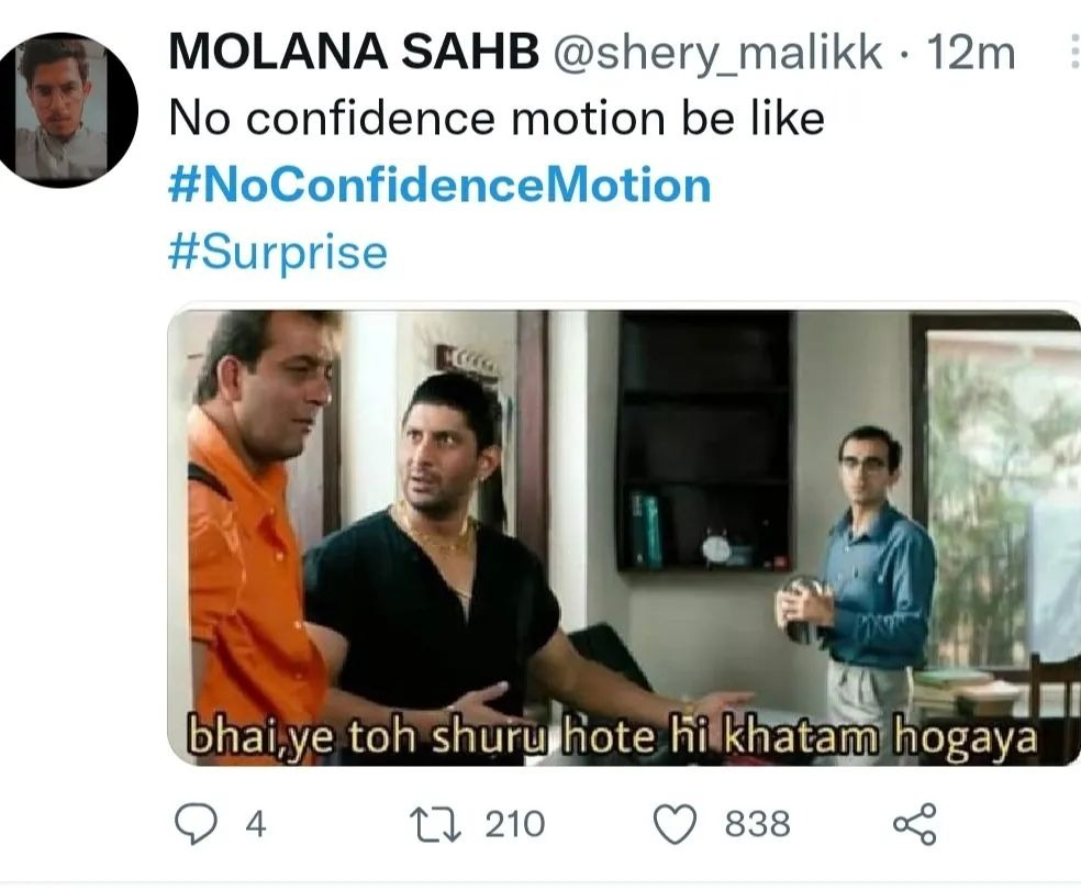 لیکن آج ڈپٹی اسپیکر قومی اسمبلی قاسم سوری نے اپوزیشن کی جانب سے وزیراعظم عمران خان کے خلاف پیش کی گئی تحریک عدم اعتماد کو آئین کے منافی قرار دیتے ہوئے مسترد کیا گیا اور قومی اسمبلی کا اجلاس ملتوی کر دیا جس کے بعد سوشل میڈیا پر میمز کا طوفان آگیا۔