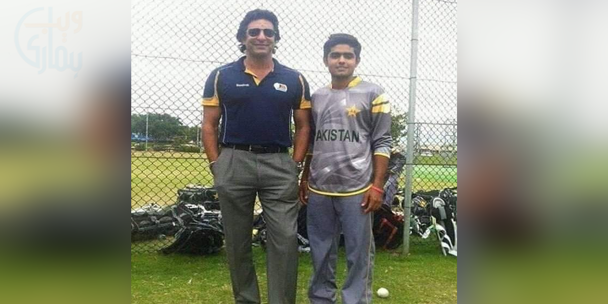اس تصویر میں بھی بابر اپنے ہیرو کے ساتھ تصویر بنوا رہے ہیں، کوئی سوچ بھی نہیں سکتا تھا کہ تصویر بنوانے والا کل کو ساتھ بیٹھ کر وسیم اکرم کے ساتھ کھانا کھائے گا۔