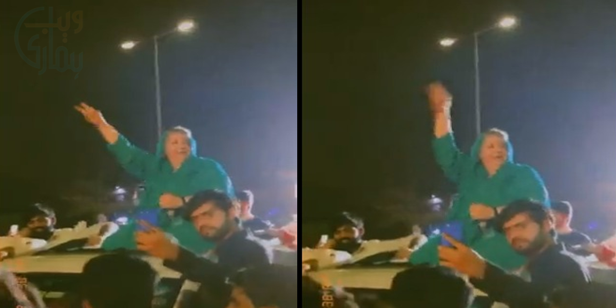 ویڈیو میں دیکھا جا سکتا ہے کہ ڈاکٹر یاسمین راشد گاڑی کی چھت والی کھڑکی سے نکل کر عوام کے نعروں کا جواب دے رہی ہیں۔