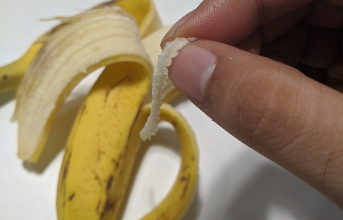 کیلے کے ساتھ چپکی یہ لڑی یا تار اپنے اندر کئی فوائد رکھتی ہے اور کیلے کی تازگی کو واضح کرتی ہے۔ جبکہ یہ لڑی اپنے اندر کچھ منرلز رکھتی ہے۔
