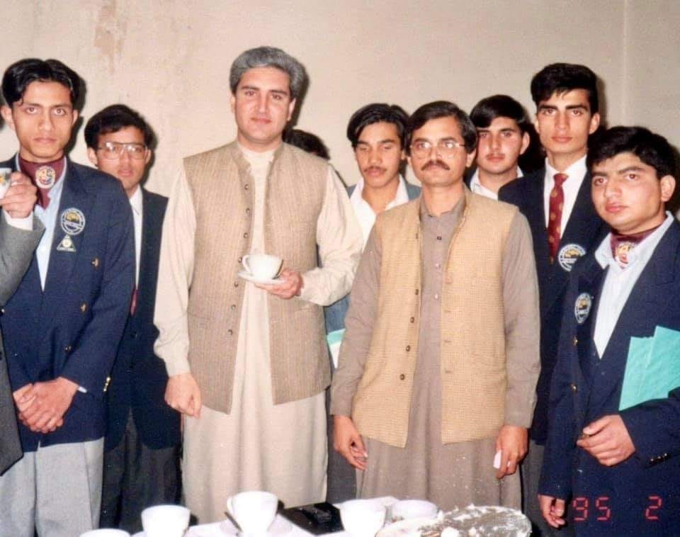 اس تصویر میں جو شخص چائے کا کپ تھامے کھڑے ہیں وہ کوئی اور نہیں بلکہ سابق وزیر خارجہ شاہ محمود قریشی ہیں۔ شاہ محمود قریشی کی خوبصورت آنکھیں، سفید گلابی چہرا، اور دلکش ادا بتا رہی ہے کہ شاہ محمود قریشی جوانی میں بھی خوبصورت ہوں گے۔