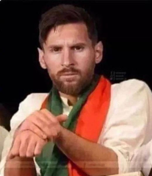 جبکہ دوسری جانب ارجنٹائن سے لیونل میسی نے بھی شرکت کی ہے، سفید شلوار کنیز اور گلے میں پی ٹی آئی کا جھنڈا اوڑھے یہ مشہور فٹ بالر ہیں مگر یہ بھی میم کا حصہ بن گئے۔