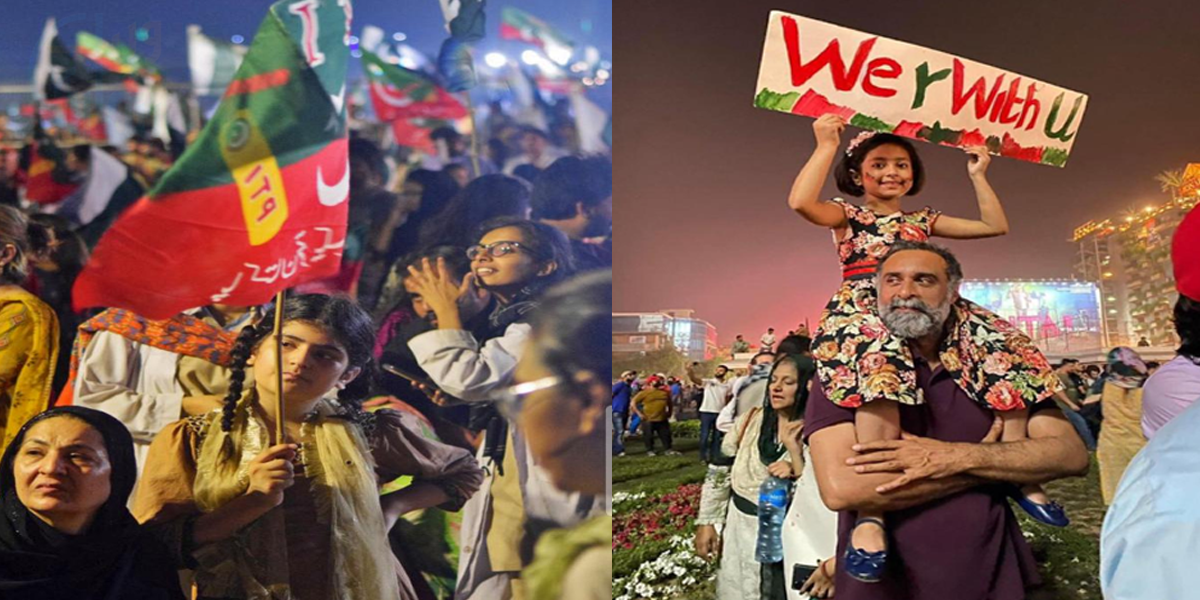 دوسری جانب عوام کی جانب سے بھی جلسے میں بچوں سمیت شرکت کی گئی، کوئی اپنے بچے کو اٹھائے جلسے میں آیا تو کسی نے جلسے میں آنے کے لیے خوب تیاری کی۔